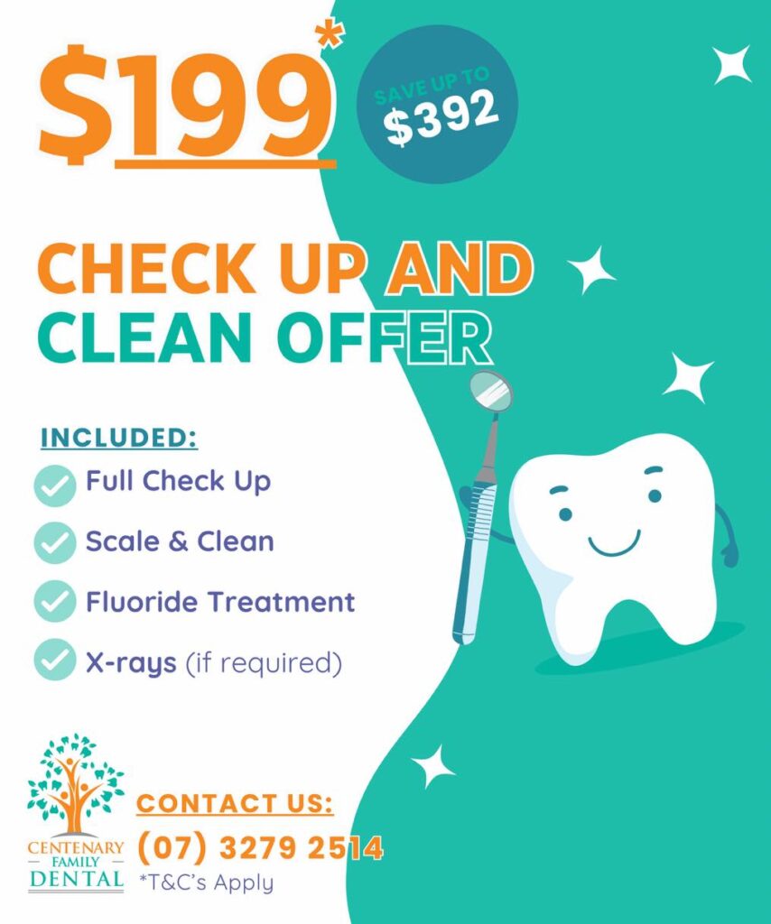 Keep your smile bright and healthy with Centenary Family Dental’s comprehensive dental package for just $199. This offer includes a full dental check-up, scale and clean, fluoride treatment, and X-rays (if required). Book your next appointment with Centenary Family Dental today.